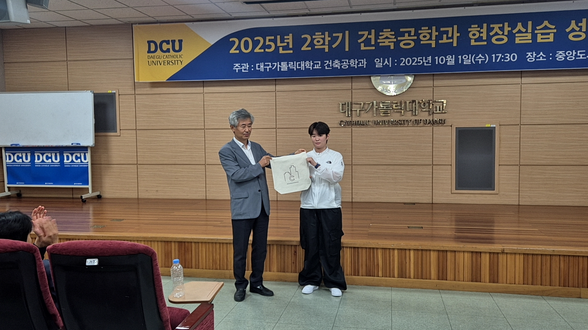 학우들이 지난 여름동안 각각의 건축회사에서 실습을 하며 배운것과 보고 겪은 것들을 발표하는 시간을 가졌습니다. 실습을 했던 학우뿐만 아니라 올해 겨울방학에 실습을 가는 학생들과 다른 학우들도 참가하여 궁금한 것을 묻고 답하는 시간도 가졌습니다.